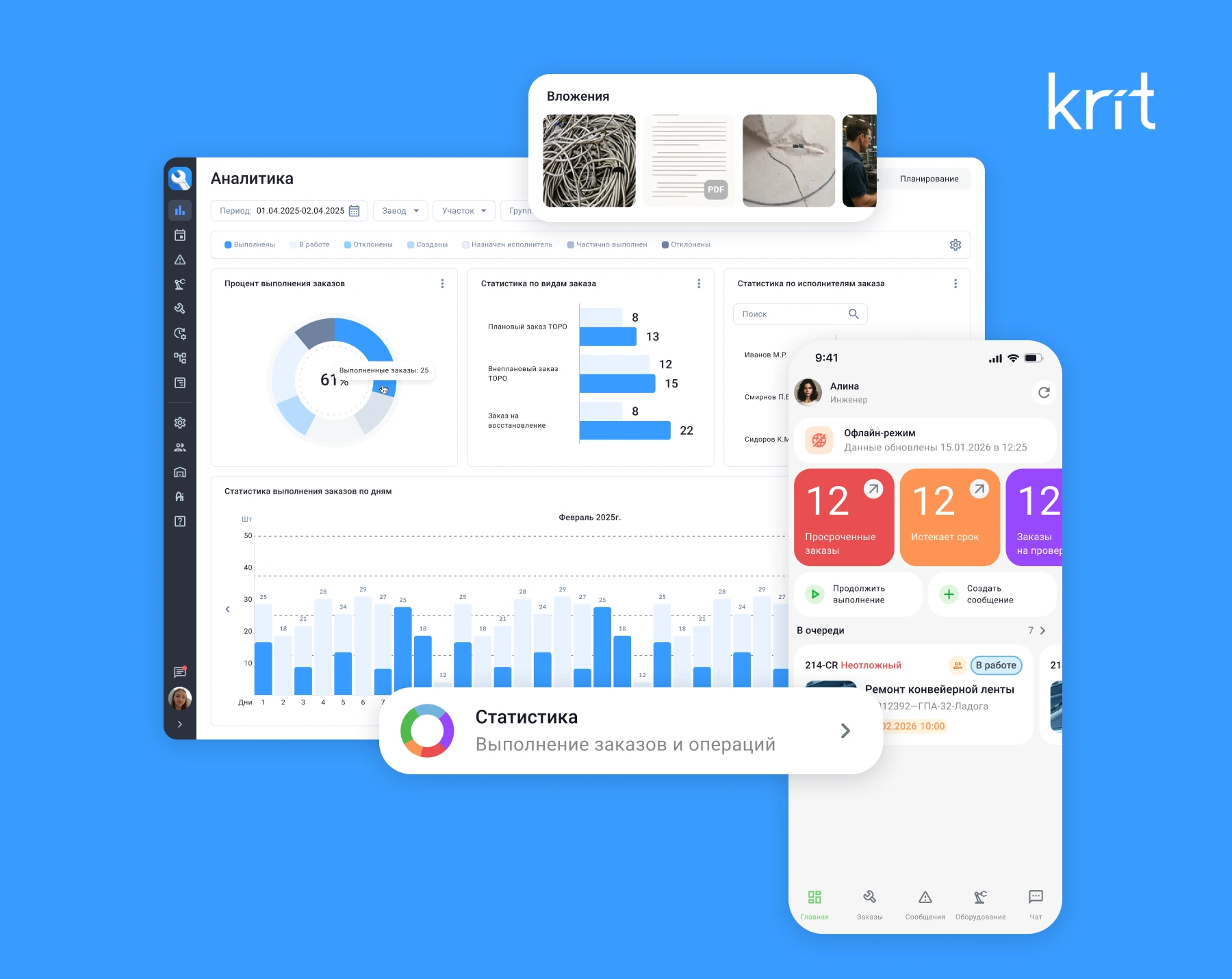28-29 октября команда КРИТ ярко заявила о себе на форуме EVO.INDUSTRY 2025, который собрал более 500 ведущих технических специалистов из горнодобывающей, металлургической, нефтегазовой и энергетической отраслей. Благодаря нашему продукту KRIT EAM: Мобильный ремонтник, непревзойденной харизме делегатов и активному диалогу с представителями промышленности и цифровых проектов, мы стали настоящим центром притяжения в центре событий форума.